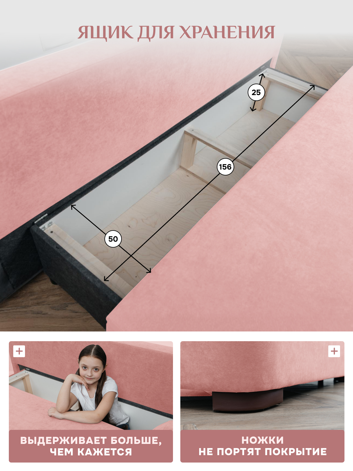 Вместительные потайные ящики в диване добавляют места для хранения.