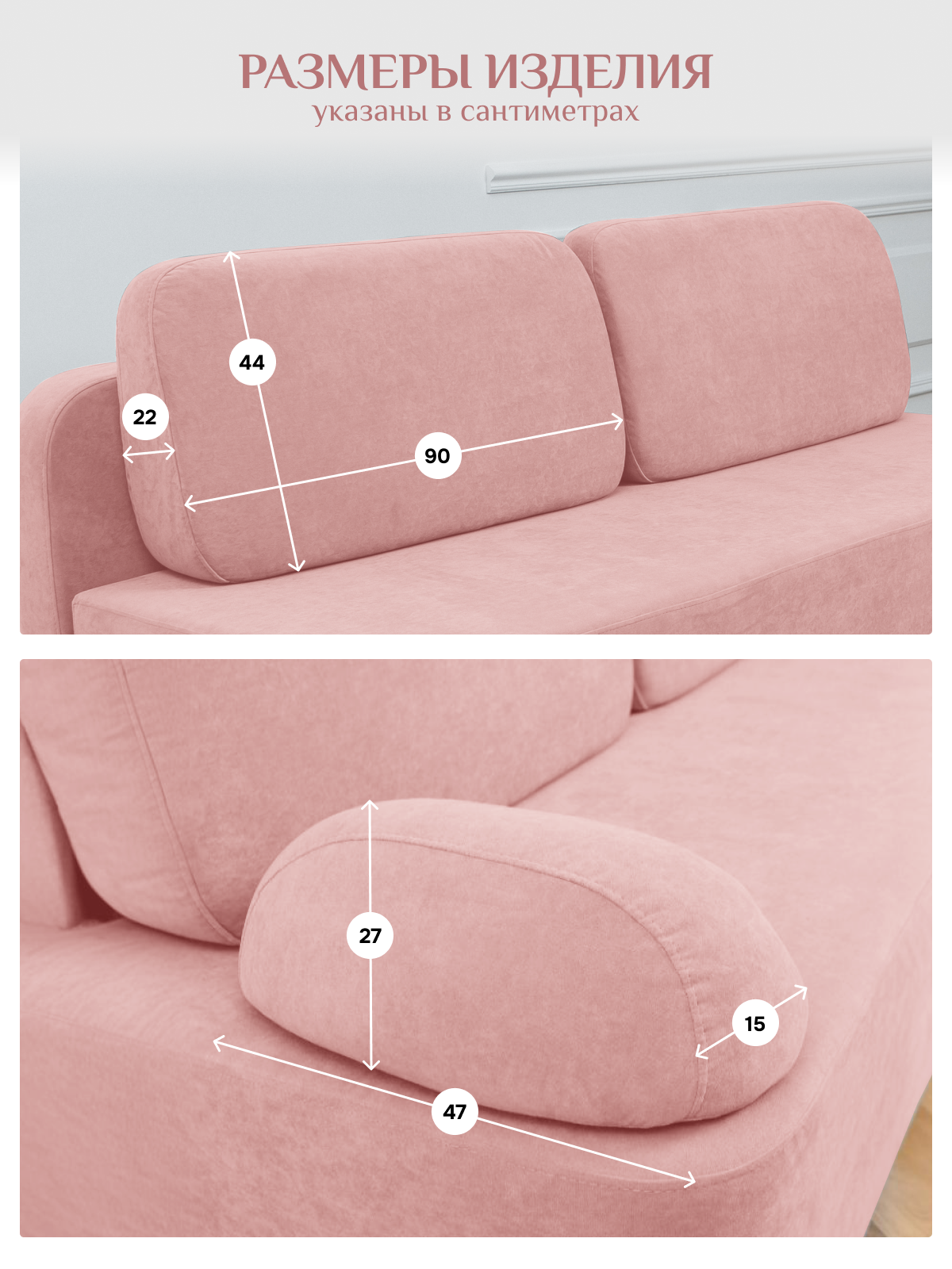 В комплекте с диваном идут четыре подушки.
