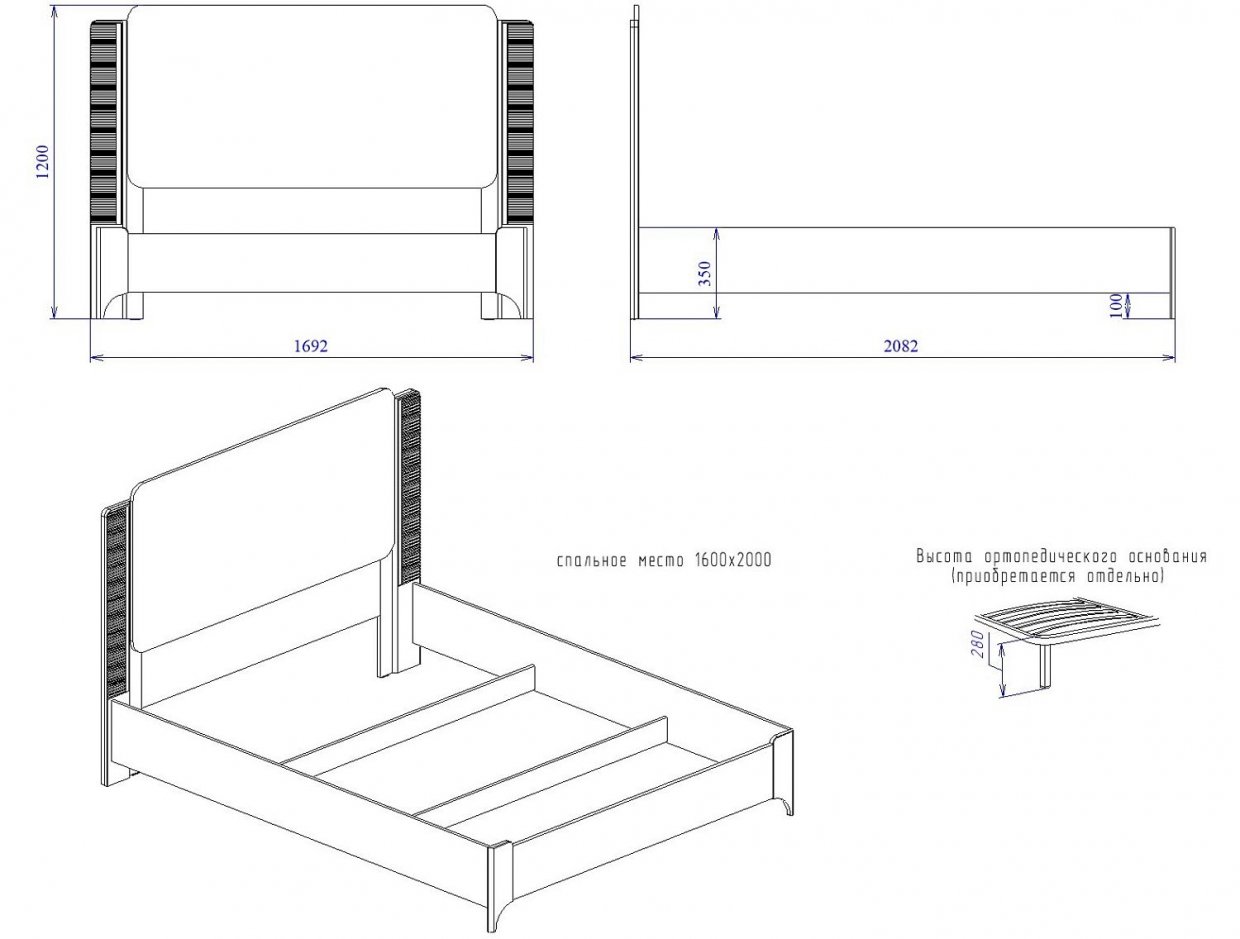 Кровать двуспальная Сиде Белый (СБК) в Советском - sovetskij.mebel-e96.ru