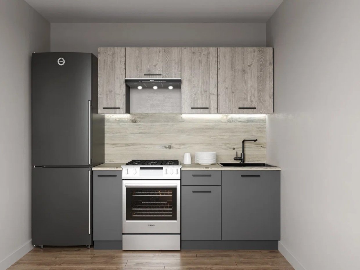 В стоимость не входият раковина, смеситель, техника, фартук, плинтуса и закрывающий комплект (глухая панель нижнего бокового модуля. можно докупить отдельно)