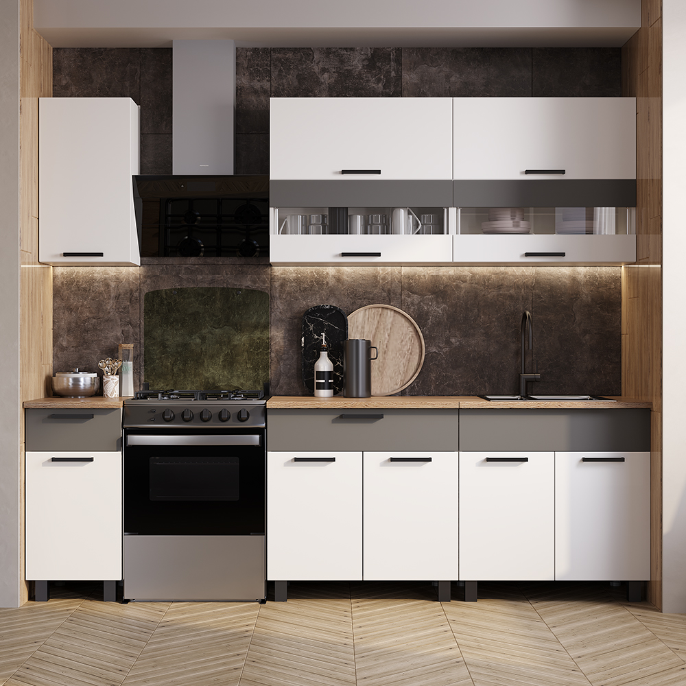 Кухонный гарнитур Монтана 2000 мм белый/графит (БТС) в Советском - sovetskij.mebel-e96.ru