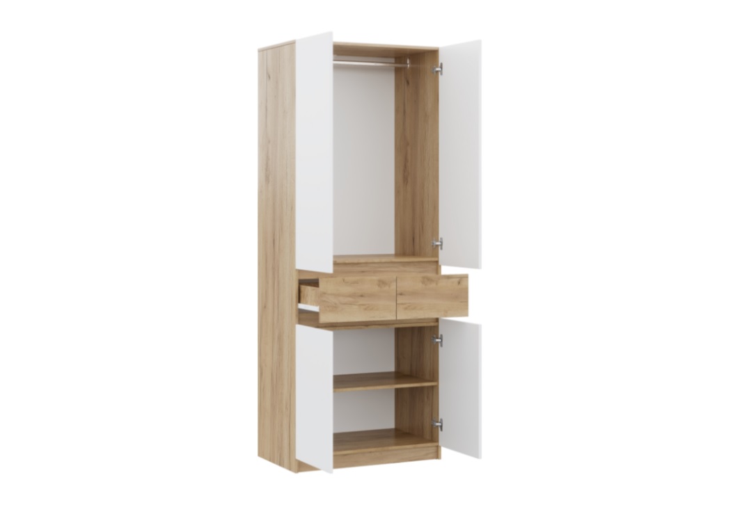 1.Корпус - Дуб Крафт золотой / Фасад ЛДСП - Белый гладкий